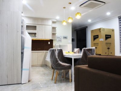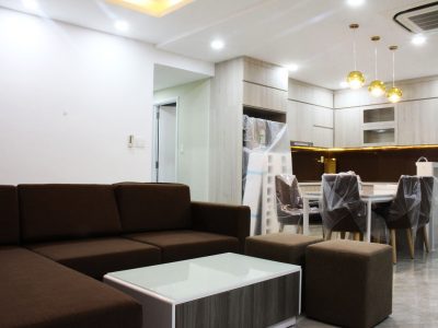 Cách bố trí phòng khoa học tạo cảm giác thông thoáng cho cả căn hộ. Màu sắc chủ đạo là tông nâu nhạt hòa quyện các điểm nhấn là hệ thống đèn led tạo nên một không gian phòng khách sang trọng. Hệ thống máy lạnh âm trần cao cấp mang lại cảm giác sảng khoái cho gia chủ.